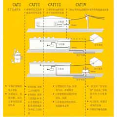 理解IEC1010 新標準最重要的一點就是過壓分類。新的標準基于危險的高能瞬間電壓(如雷擊引發的高壓)在隨電力線路傳輸過程中會逐漸衰減這一事實把電力分配系統的安全分為四類,而且類別越高,所產生的瞬間高壓能量越大。因此一個滿足三類過壓標準(CATⅢ)的儀器與只能滿足二類標準(CATⅡ)的儀器相比,前者能經受更高能量瞬間高壓沖擊,見下圖電壓CAT分類等級。
