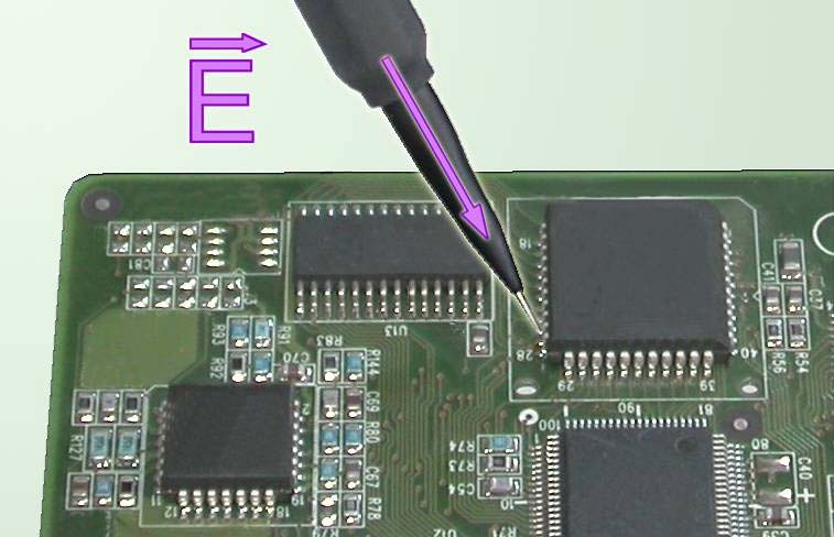 E場敏感點不能被H場源識別。 特殊的E-場探頭必須用于定位這些故障點。除了導體段部分,高電阻元件,如拉電阻或石英發(fā)生器也可證明在這方面很重要。