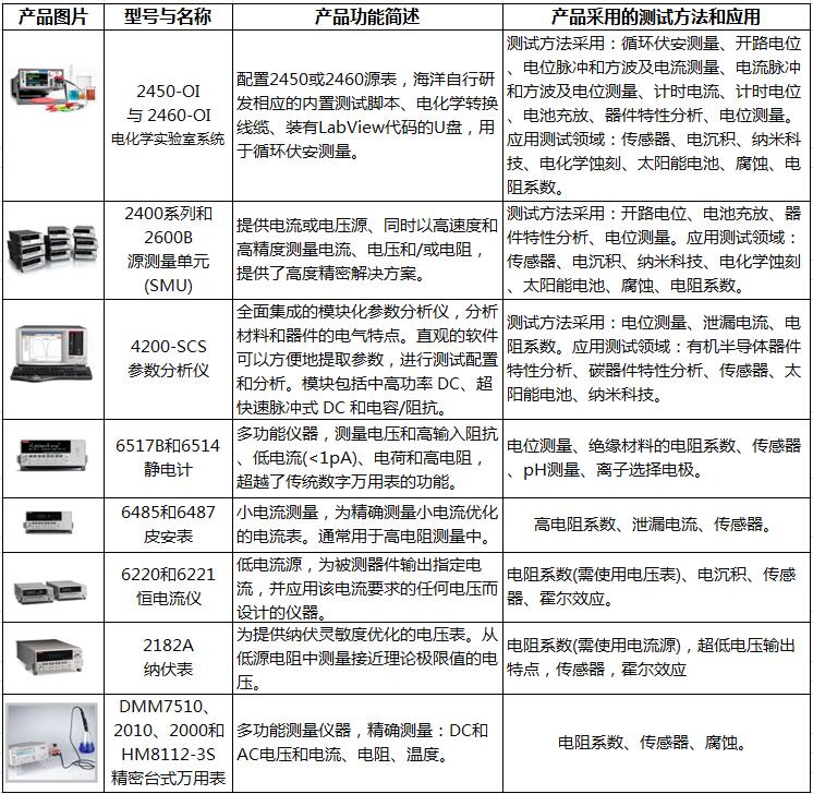 海洋儀器電化學(xué)測(cè)試儀器和系統(tǒng)采用美國(guó)吉時(shí)利的儀器技術(shù),其電化學(xué)領(lǐng)域包括化學(xué)電池、腐蝕科學(xué)、電化學(xué)沉積、有機(jī)電子、光電化學(xué)、材料研究、傳感器及半導(dǎo)體材料和器件。