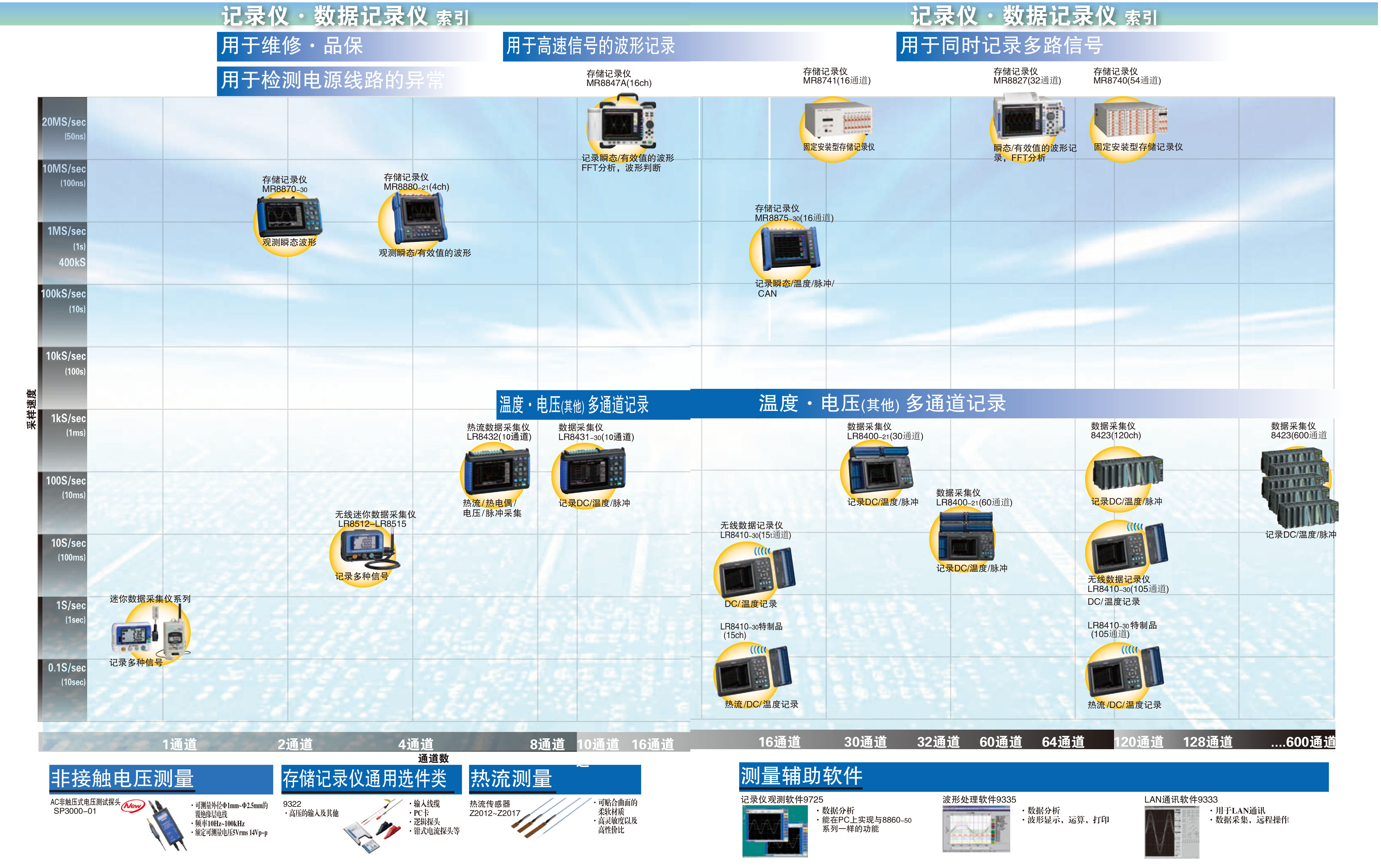 下圖為數(shù)據(jù)記錄儀和數(shù)據(jù)采集儀索引圖,可針對具體的通道數(shù)、采樣速度和用途進行具體的選型。