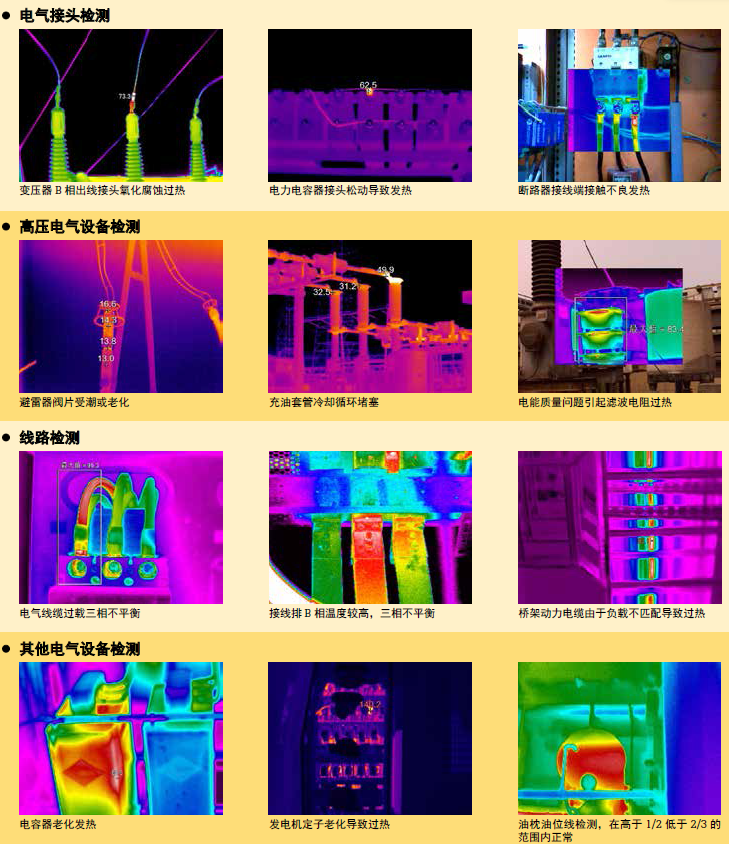 紅外熱像儀應用廣泛,在很多領域得到應用,在電氣設備維護領域中,紅外熱像儀得到普遍使用,尤其在電氣接頭檢測、高壓電氣設備檢測、線路檢測、其它電氣設備檢測等發揮了巨大作用。具體如下: