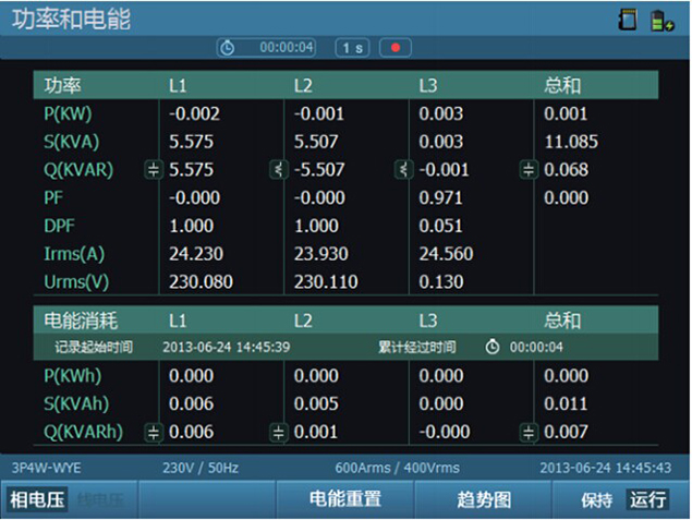 負載參數:輸入有功功率、輸入無功功率、輸入電壓、輸入電流。