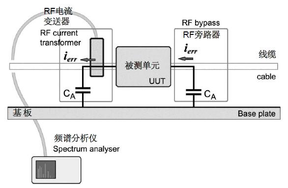 OIESA1系統(tǒng)測(cè)量工作在一個(gè)導(dǎo)電的基板上進(jìn)行,這樣可以減少測(cè)量裝置、線纜位置以及環(huán)境電磁干擾的影響。把干擾電流通過(guò)容性耦合裝置耦合到基板上,然后測(cè)量這個(gè)由容性裝置和基板構(gòu)成的電流回路上的電流 ierr(見下圖),這樣的測(cè)量方法,具有較好的可重復(fù)性,從而能正確評(píng)估設(shè)計(jì)修改的有效性。典型的EMI問(wèn)題,一般是以下兩個(gè)原因造成的: