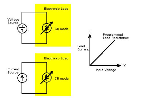 2、定電阻(CR)模式:在定電阻模式中,電子負載將吸取與輸入電壓成線性正比例的負載電流。定電阻模式應用在測試電壓源或電流源和電源激活測試,用于測試電源的啟動與限流特性,相應于滑線變阻器,不易受溫度影響。
