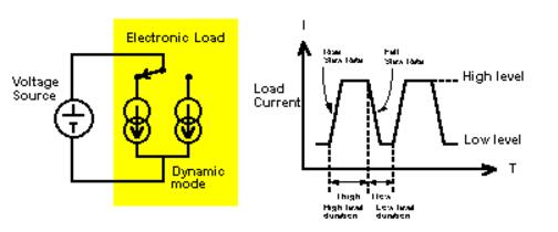 5、動態(tài)負載:動態(tài)負載操作是周期性在兩個負載狀態(tài)之間切換。電源的調(diào)整率和瞬態(tài)反應在高低電流水平、持續(xù)時間和升降率的混合變化下用示波器監(jiān)視它的輸出電壓波形。動態(tài)負載模式應用于測試電源的整體回路反應,即瞬時響應和回復時間(RecoveryTime)測試。實際上大部份負載為動態(tài)負載,例如計算機磁盤驅(qū)動器動作或不動作時工作電流的變化,動態(tài)負載模式能仿真這種狀況(脈沖型負載)。