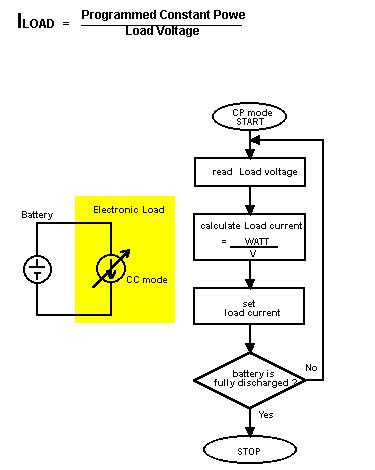 3310系列電子負載結合計算機時可以達到定功率模式,使用計算機來讀取負載電壓,依下列公式計算出定功率下的電流,并依下列的流程圖達到定功率模式的測試需求。
