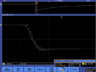 圖2-4顯示的是某一開關上電的過程,這一過程只有具有高采樣率,存儲深度很長的示波器才可以捕獲下來。