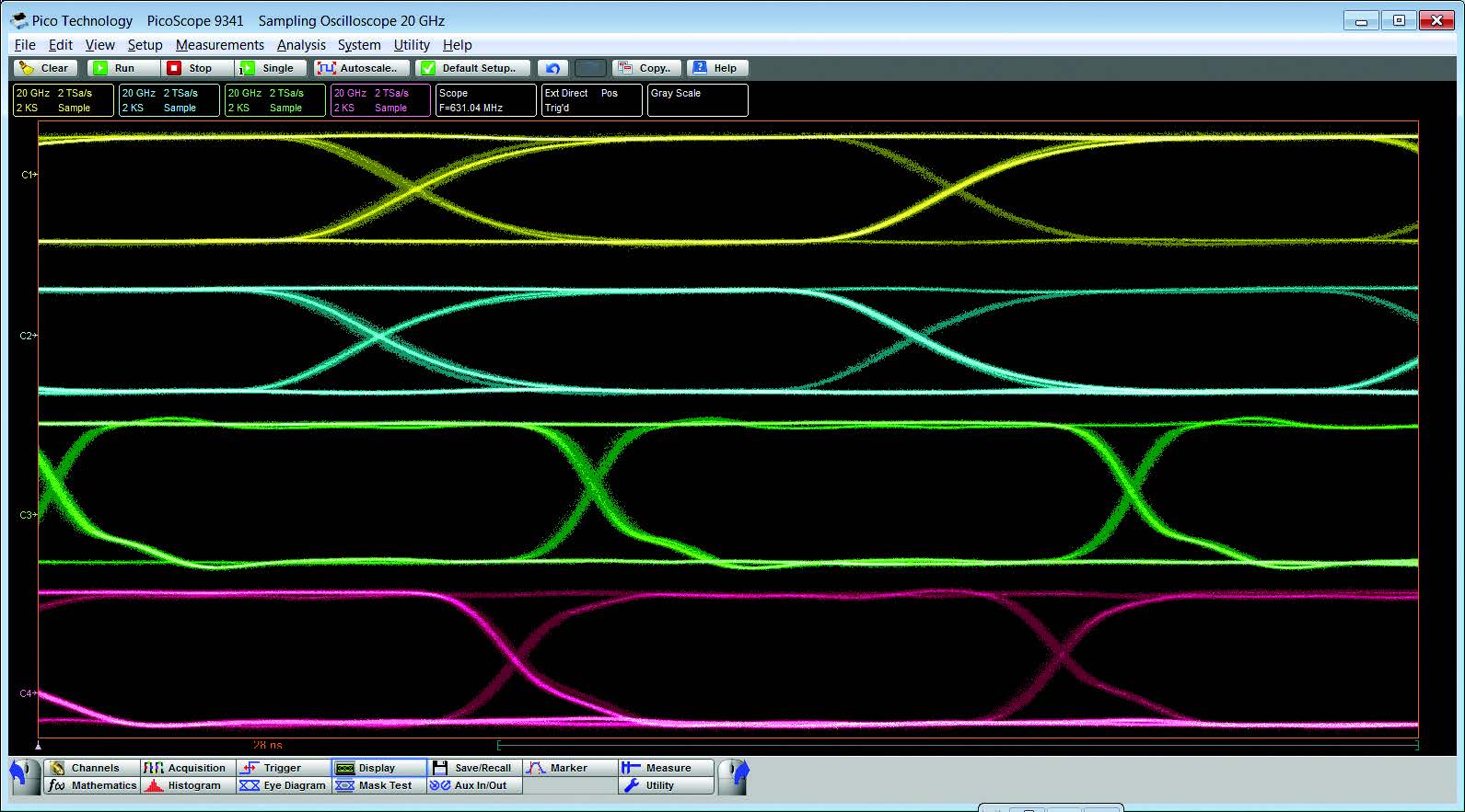 如果你要測(cè)量高速重復(fù)性信號(hào),PicoScope 9000系列采樣示波器在它們的價(jià)格范圍內(nèi)所提供的性能最高。PicoScope9000系列采樣示波器專(zhuān)用于觀察重復(fù)性信號(hào),因此不適用于實(shí)時(shí)或單次應(yīng)用。PicoScope 9000系列特別適用于測(cè)試具有多個(gè)千兆位(gigabit)數(shù)據(jù)傳輸?shù)耐ㄓ崱⒂?jì)算機(jī)和消費(fèi)類(lèi)電子產(chǎn)品。