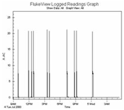 利用數(shù)字萬(wàn)用表的最小/最大/平均值記錄模式,對(duì)間歇性故障的診斷非常有效。但是,它假設(shè)在出現(xiàn)故障時(shí)所連接的電路點(diǎn)能夠表現(xiàn)出最大值或最小值;如果間歇性故障引起的讀數(shù)介于最大值和最小值之間,那么最小/最大/平均值功能就不會(huì)太有助于確定間歇性故障的原因。