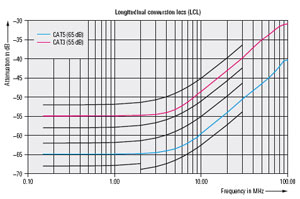 CISPR22:2005和EN55022:2006標準規定的符合性測試方法:測量EUT應當按照所連得通信線纜種類對有用對稱信號進行相應的抑制(電纜種類CAT3,CAT5和CAT6在標準中定義)
