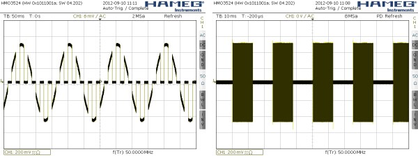 當觀察一個未知信號時,通過使用一個非常簡單的模擬裝置,你可以很快獲得一個信號出現的第一圖像。讓我們看看,例如:一個具有50MHz載波頻率的調幅信號(AM),其調制為一個40Hz的矩形信號。為了回答你的問題,這個例子本身表明我們會得到更多的創意。