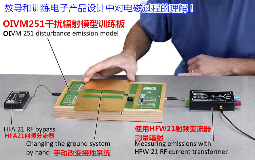 OIVM251干擾輻射模型訓(xùn)練板是電子工程師進(jìn)行初高級培訓(xùn)和教學(xué)實(shí)驗(yàn)的理想選擇。OIVM251具有各種不同的實(shí)驗(yàn)訓(xùn)練,使電子工程師對現(xiàn)代電子產(chǎn)品的電磁處理過程有更好的理解。該訓(xùn)練實(shí)驗(yàn)演示了從源到天線干擾發(fā)射的耦合機(jī)制和電磁兼容措施的影響。通過不同的實(shí)驗(yàn)設(shè)計(jì)方法,可以了解OIVM251干擾輻射模型訓(xùn)練板上電磁干擾輻射不同措施對應(yīng)的不同影響,可以快速和生動地評測電磁兼容措施。例如:執(zhí)行下面的訓(xùn)練和實(shí)驗(yàn):拉桿天線的不同用途、電源濾波器的用途、電路板上地線層的用途、使用8051微處理器編程。更有價值的是OIVM251干擾輻射模型訓(xùn)練板配備一個實(shí)驗(yàn)教材,從兩個方面訓(xùn)練如何測試干擾輻射:一是遠(yuǎn)場測試干擾輻射:遠(yuǎn)場測試板輻射電磁波,用天線測試來檢查來自測試板的干擾輻射;二是近場場測試干擾輻射:近場測試近板或器件的電場和磁場或者電壓和電流,使用ESA干擾輻射研發(fā)系統(tǒng)或近場探頭來測試靠近板或器件的輻射電壓或電流。